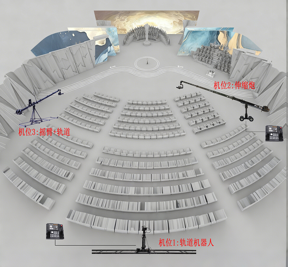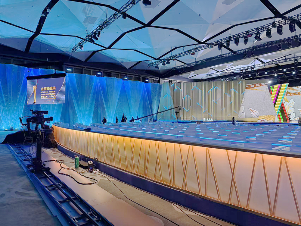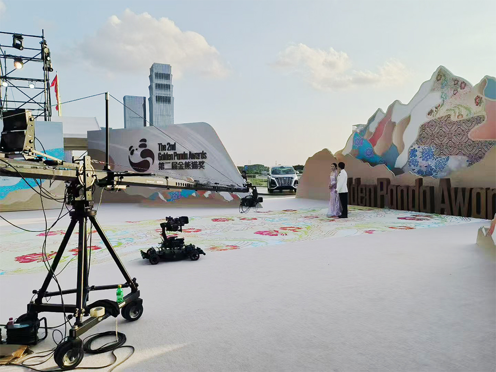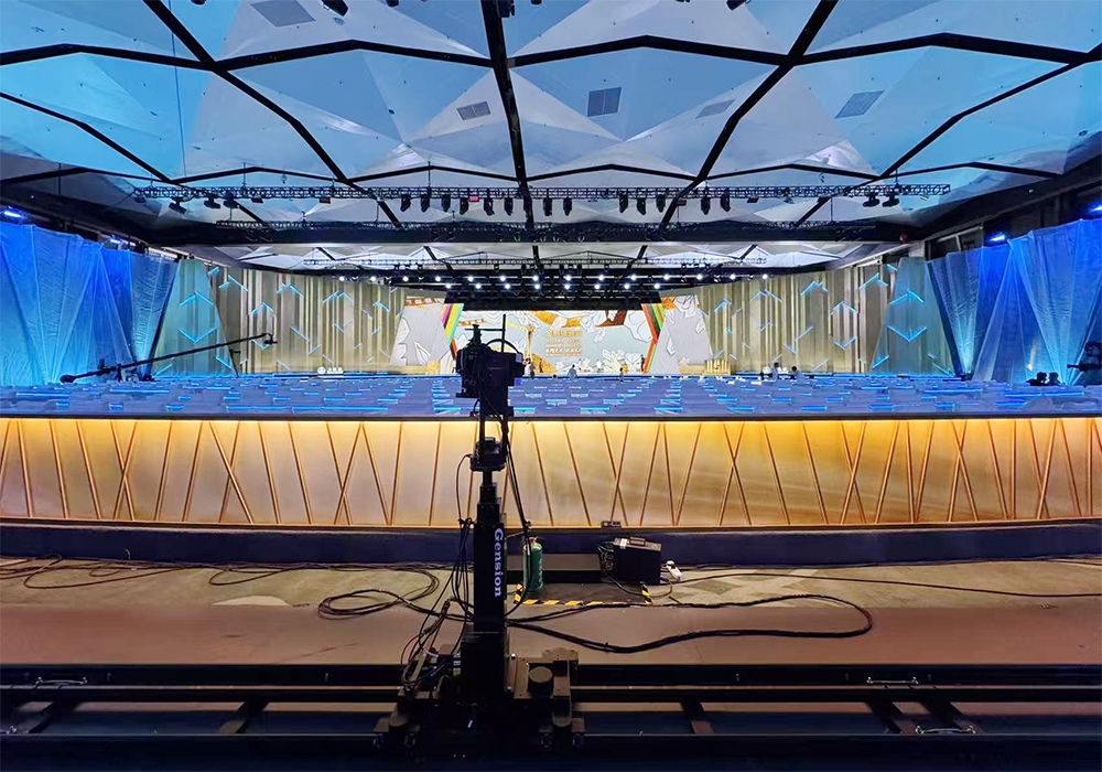 堪称大景拍摄的王牌设备,其超长伸缩范围可完整覆盖整个舞台及延伸区域。既能清晰呈现主舞台与嘉宾席融合的恢弘全景,传递典礼的盛大氛围;在节目高潮等关键节点,更能通过微调角度实现全景与细节的无缝切换,兼顾场面气势与情绪表达。